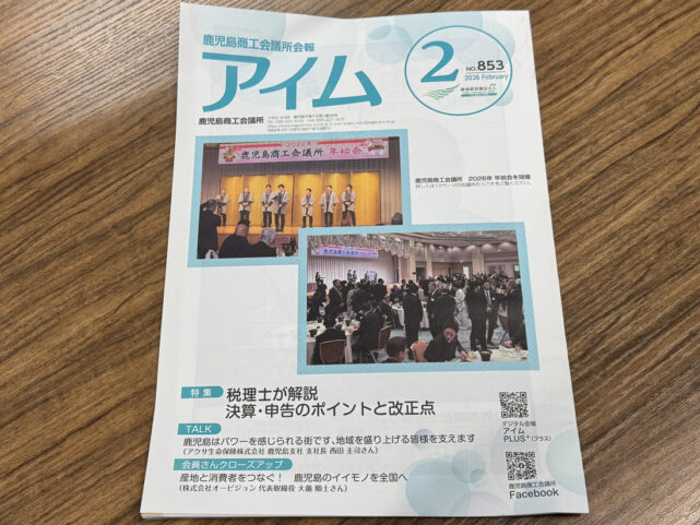 2026.02.01 お知らせ鹿児島商工会議所が発行する会報誌「アイム」2026年2月号(No.853)の「会員さんclose-up」にて、弊社を取り上げていただきました。